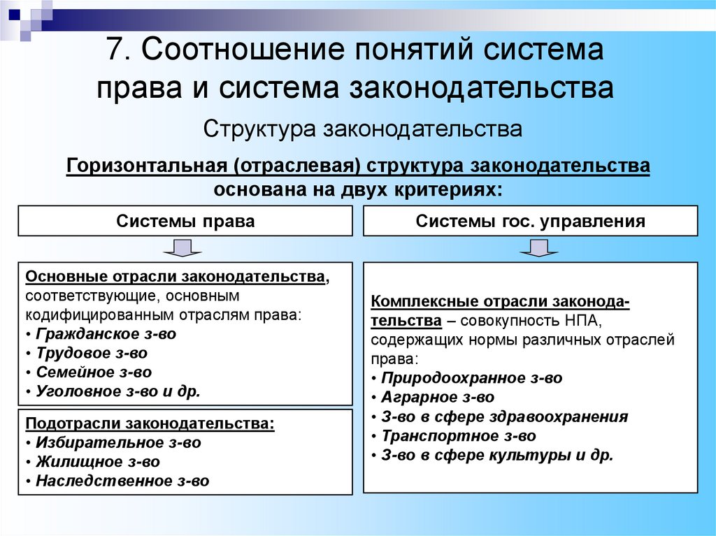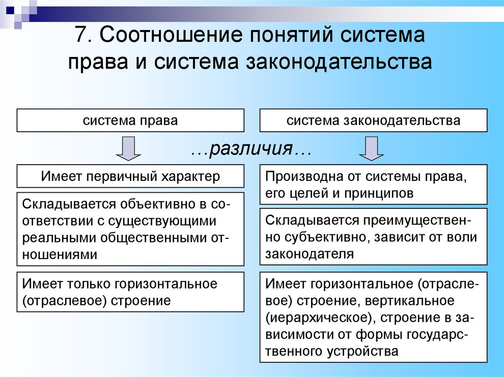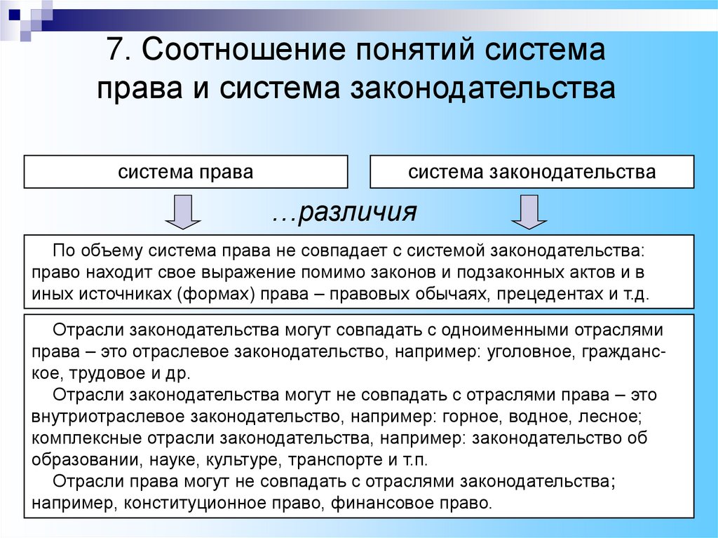 Соотношение понятий система права и система