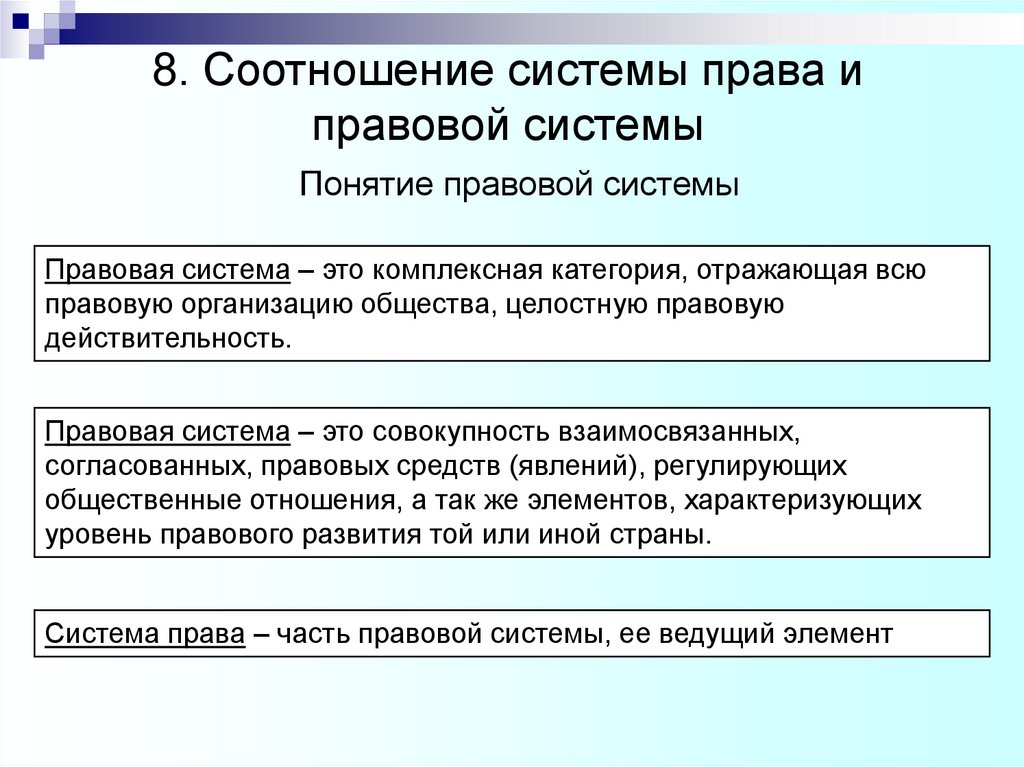 8. Соотношение системы права иправовой системы