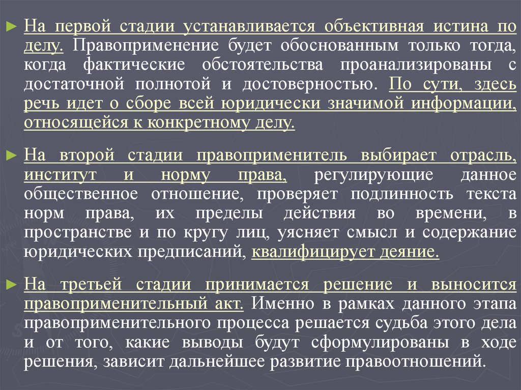 8. ВОПРОС № 2: Применение правовых норм как особая форма реализации права. Характеристика стадий процесса применения норм права.