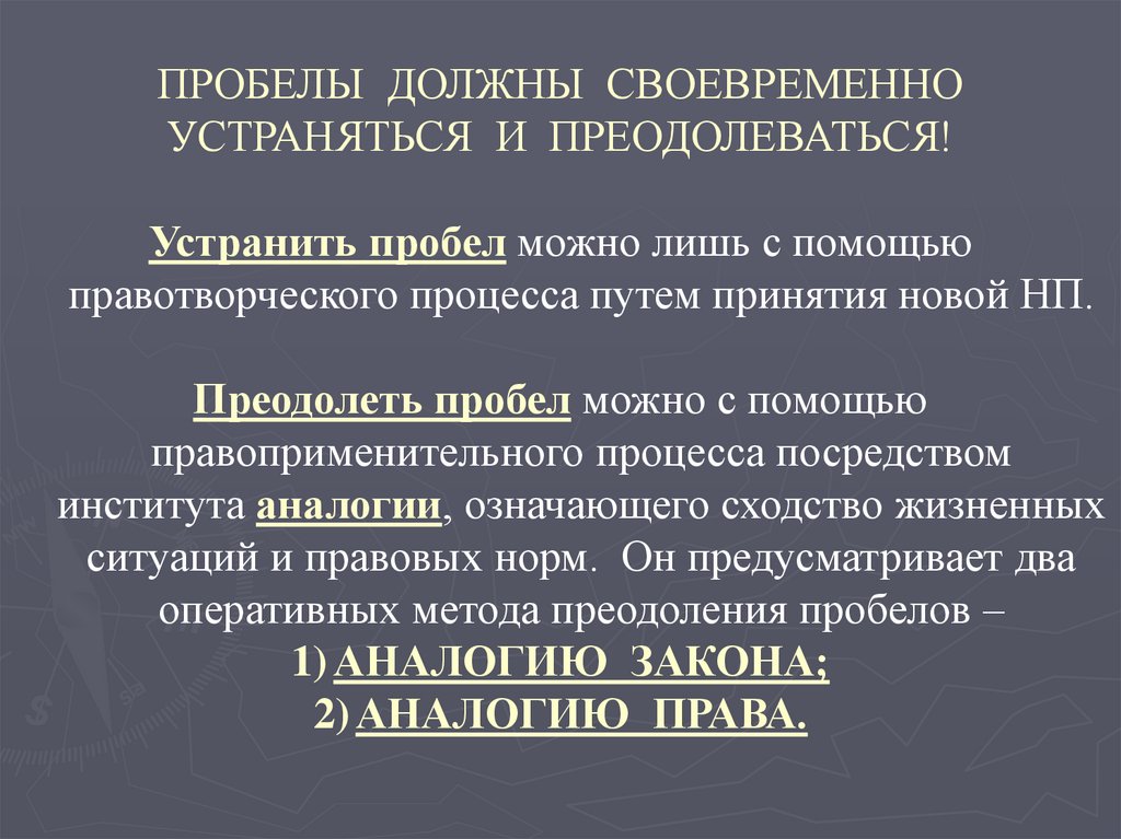 32. ВОПРОС № 4: Понятие пробелов в праве, пути их устранения и преодоления.