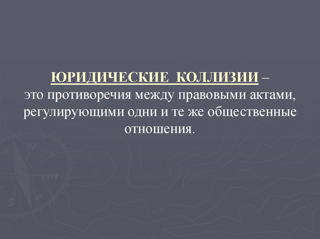 ЮРИДИЧЕСКИЕ КОЛЛИЗИИ –это противоречия между правовыми актами,
