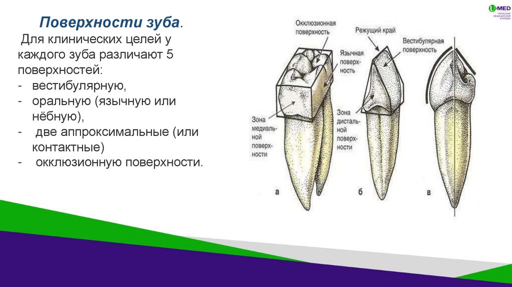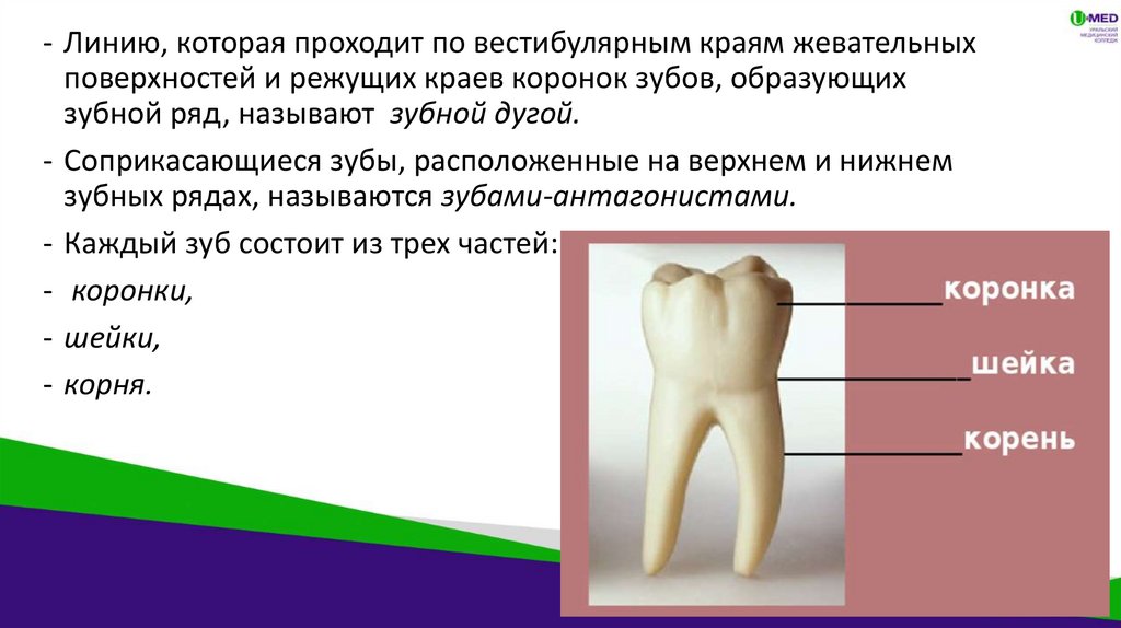 • 2. Коронка зуба имеет форму ромба, более вытянутого в