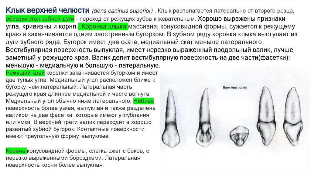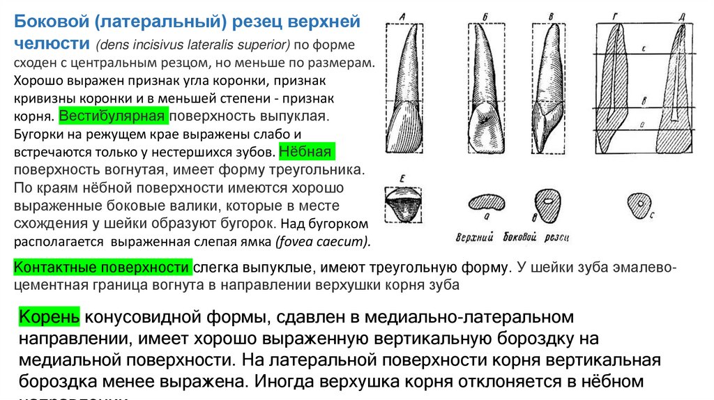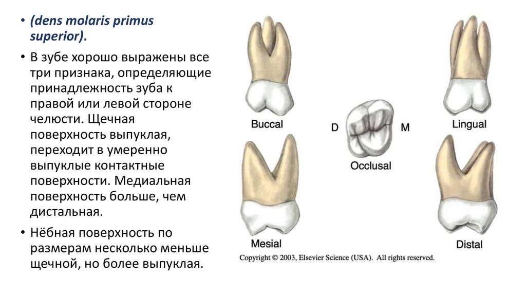 направлении. Имеется три бугорка. Передненёбный и заднещечный