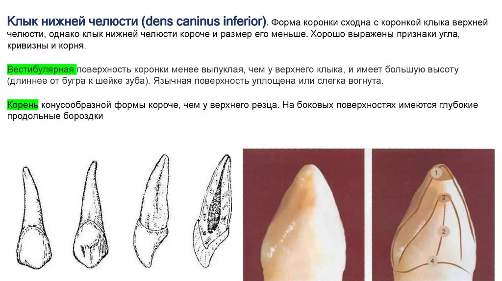 • 3. Коронка зуба имеет форму ромба, вытянутого в переднезаднем
