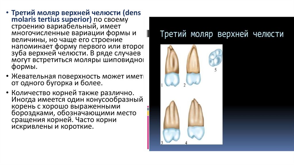 • Третий моляр верхней челюсти (densmolaris tertius superior) по своему