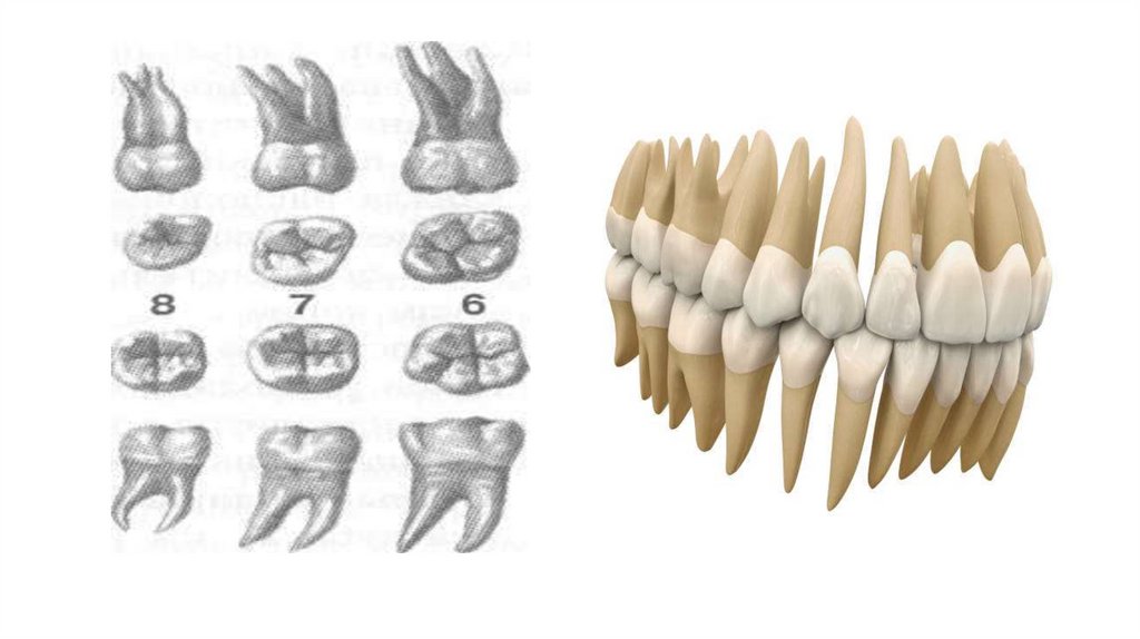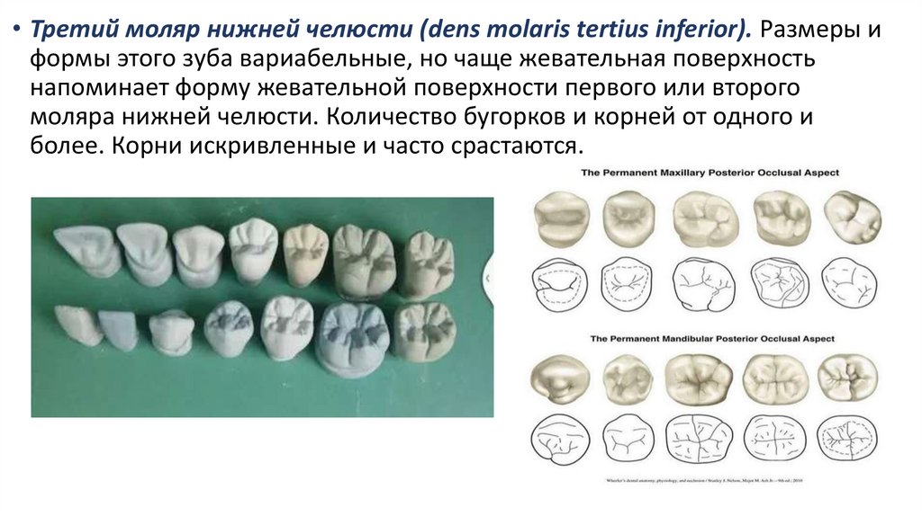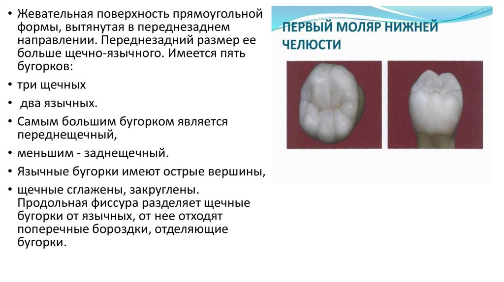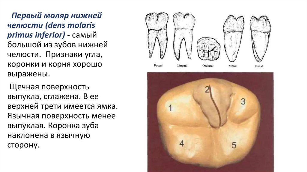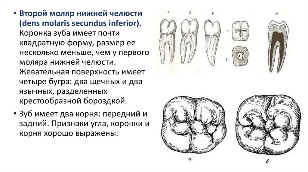 моляра нижней челюсти. Количество бугорков и корней от одного и