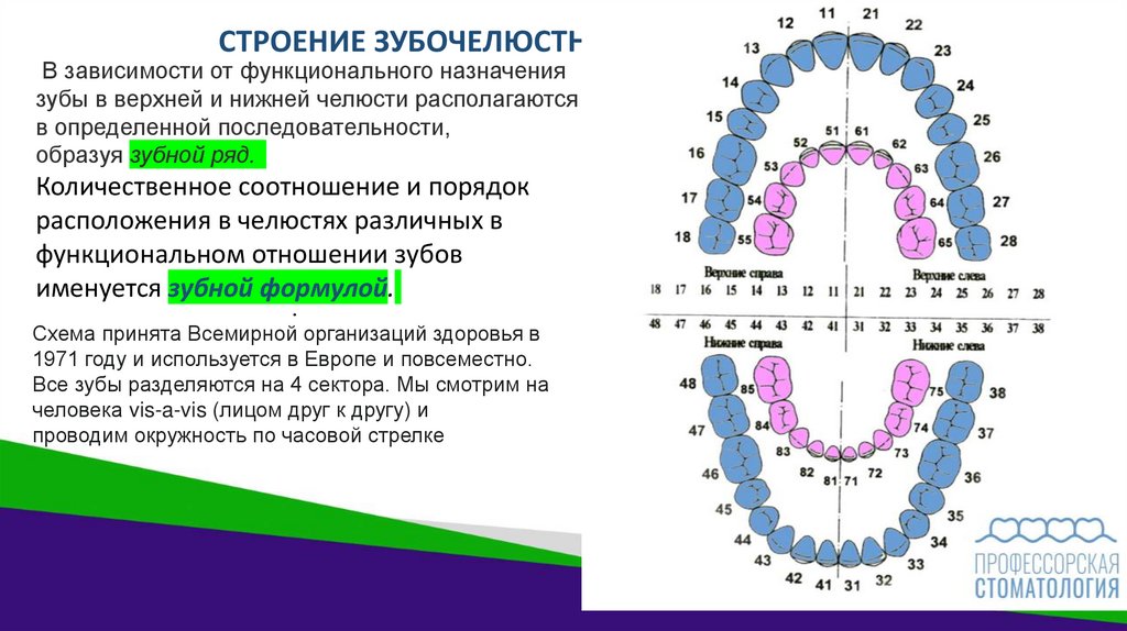 Все зубы разделяются на 4 сектора. Мы смотрим на