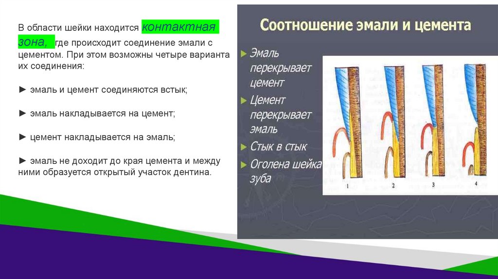 В области шейки находится контактнаязона, где происходит соединение эмали с