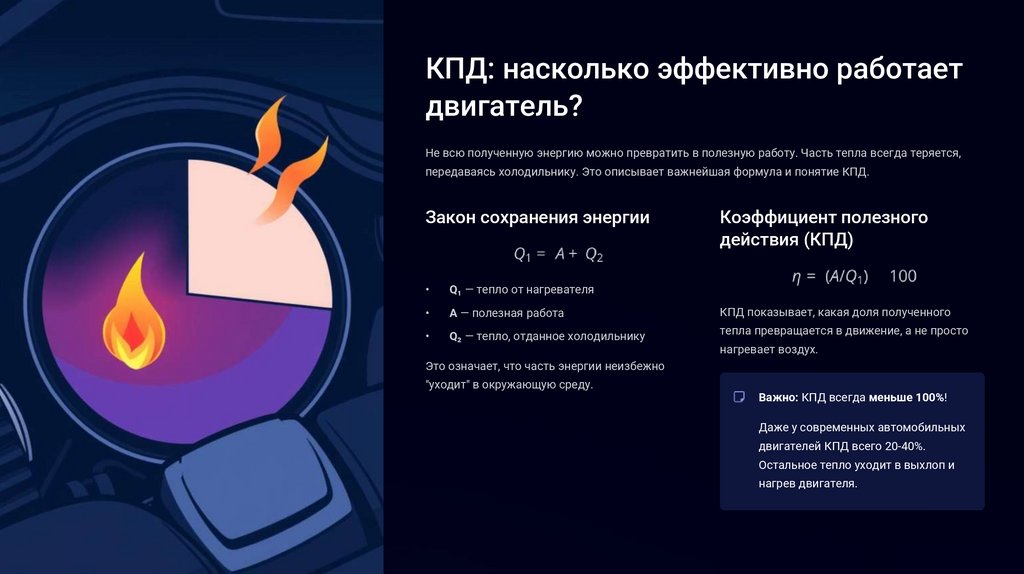 передаваясь холодильнику. Это описывает важнейшая формула и понятие КПД.
