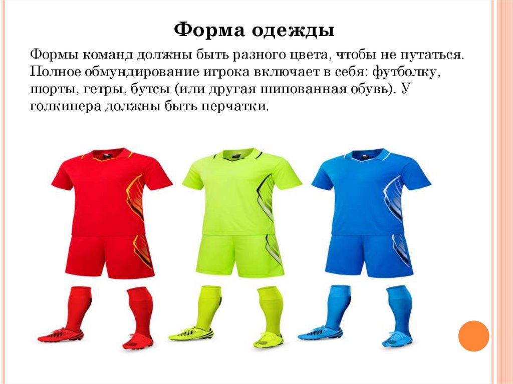 Форма одеждыФормы команд должны быть разного цвета, чтобы не путаться.