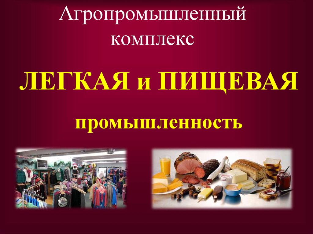ЛЕГКАЯ и ПИЩЕВАЯпромышленность