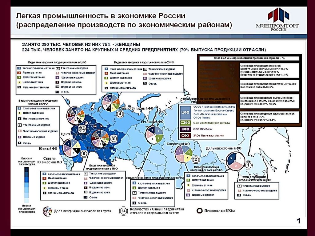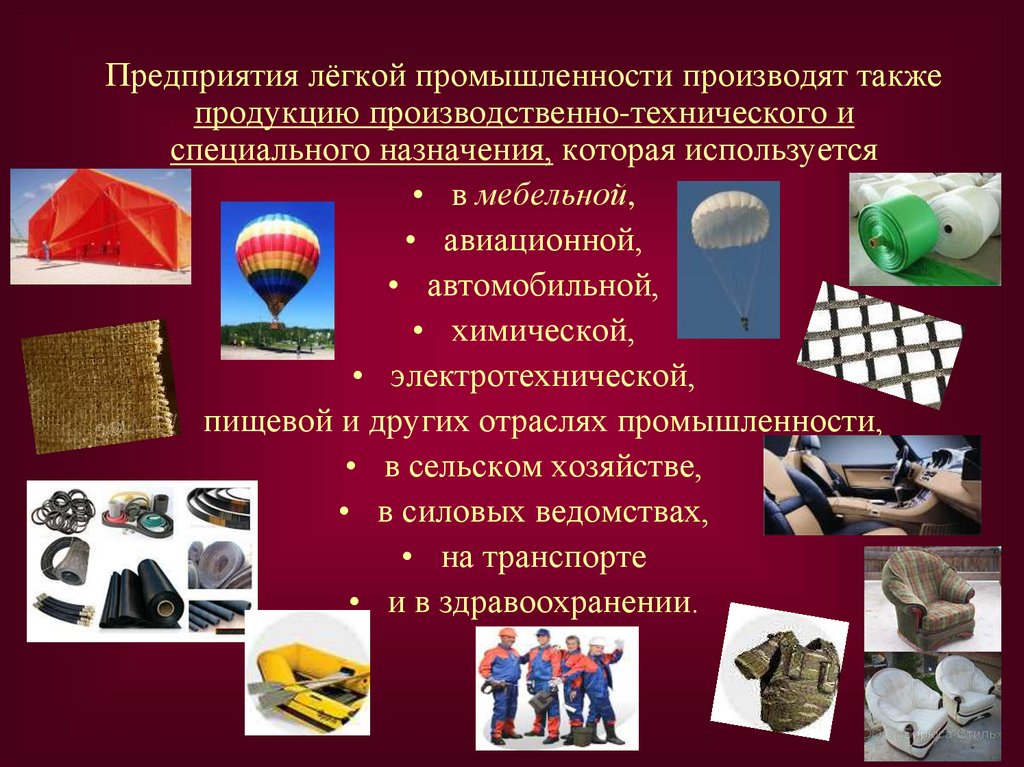 Предприятия лёгкой промышленности производят такжепродукцию производственно-технического и