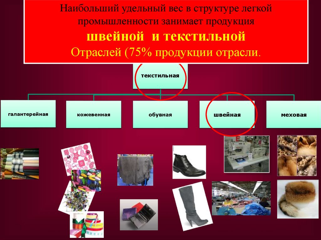 Наибольший удельный вес в структуре легкойпромышленности занимает продукция