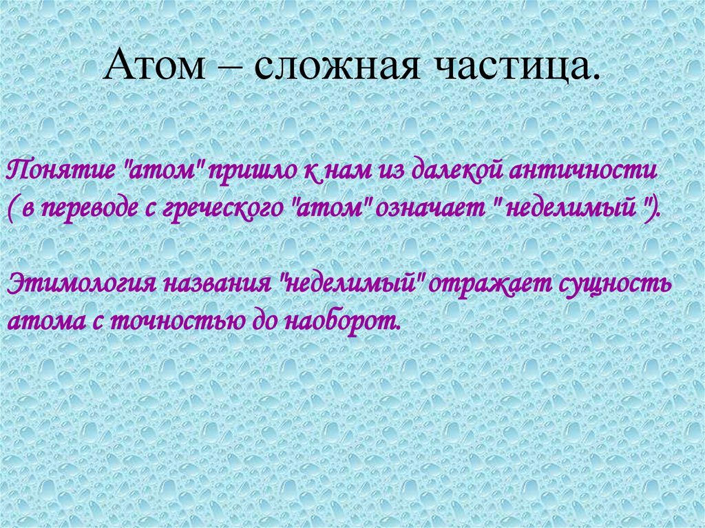 Атом – сложная частица.Понятие "атом" пришло к нам из далекой античности