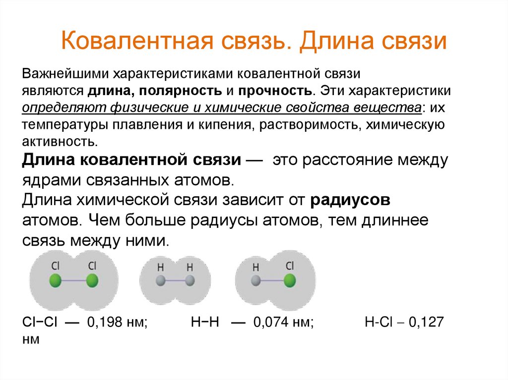 Ковалентная связь. Длина связиВажнейшими характеристиками ковалентной связи