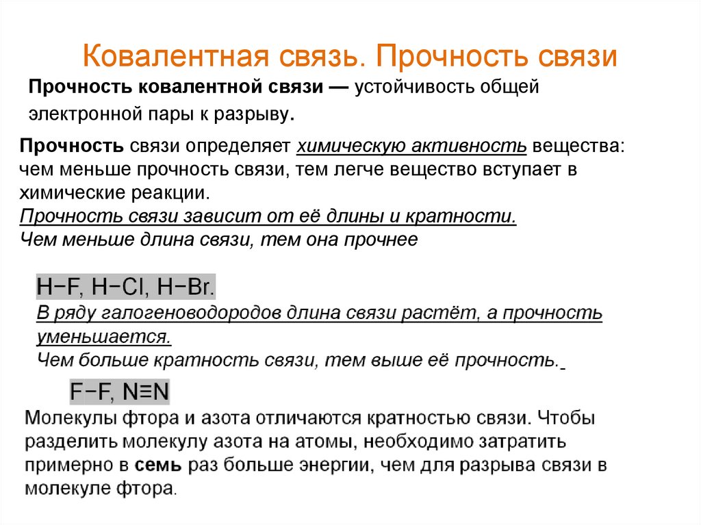 Ковалентная связь. Прочность связиПрочность ковалентной связи — устойчивость общей