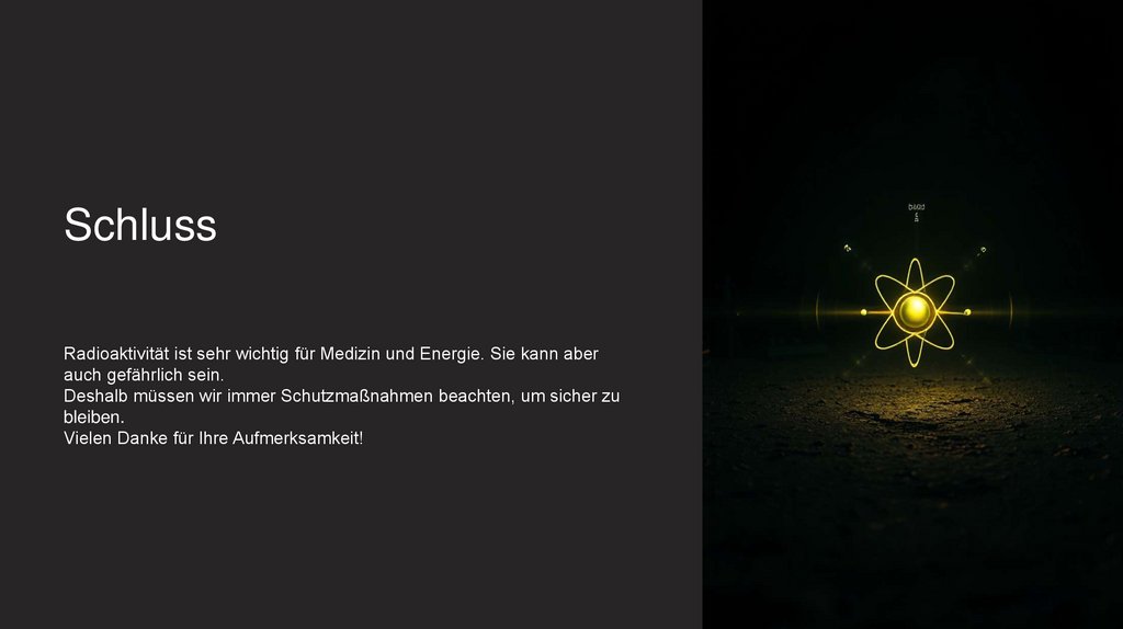 SchlussRadioaktivität ist sehr wichtig für Medizin und Energie. Sie kann aber