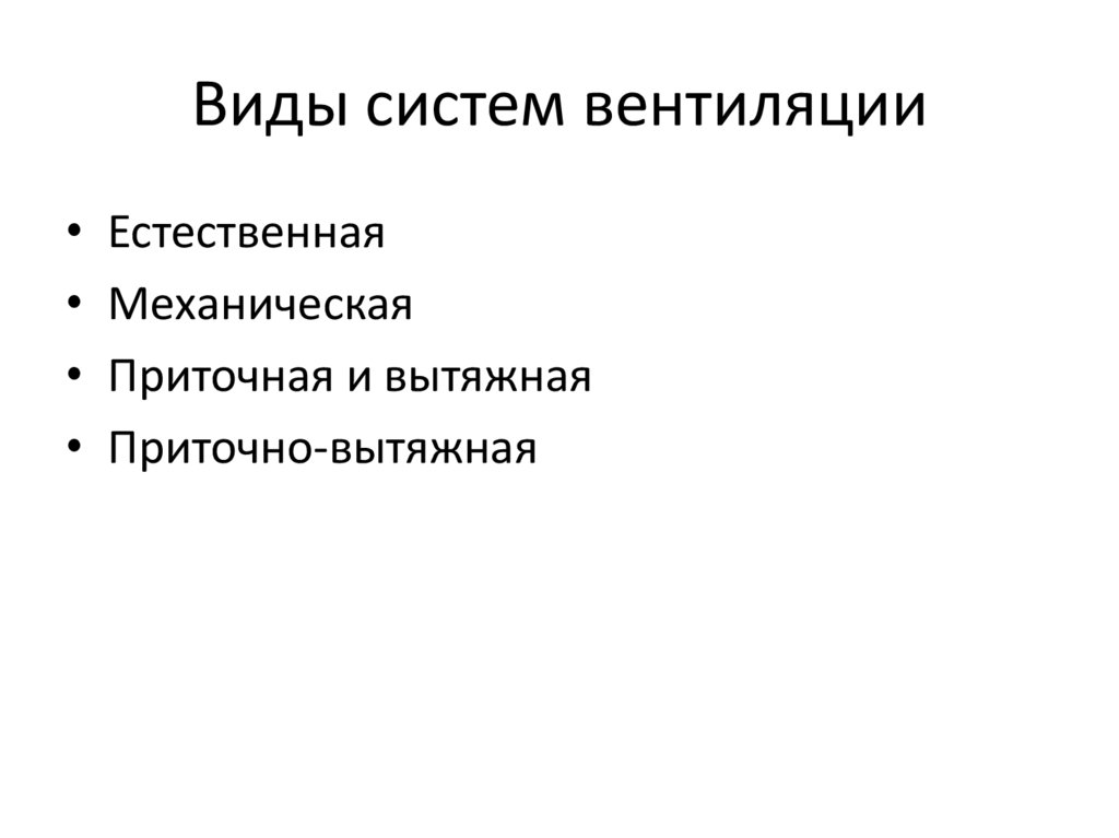 Виды систем вентиляции• Естественная