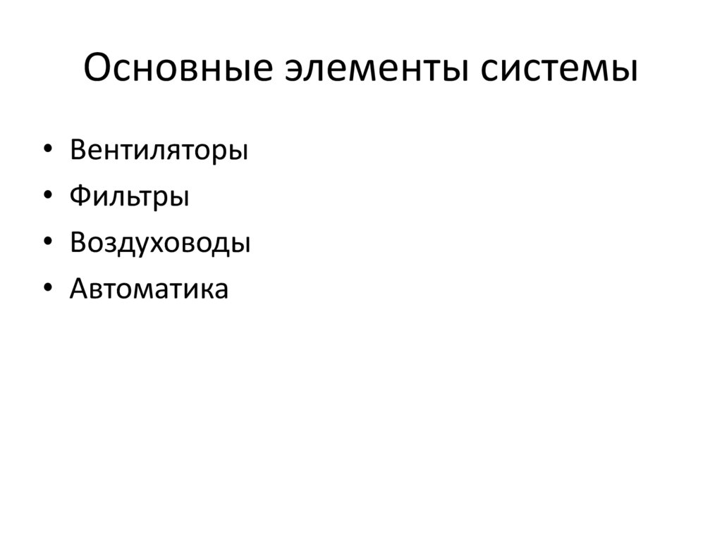 Основные элементы системы• Вентиляторы