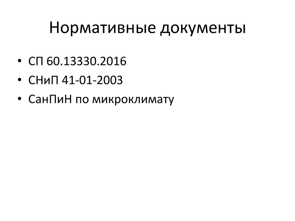 Нормативные документы• СП 60.13330.2016