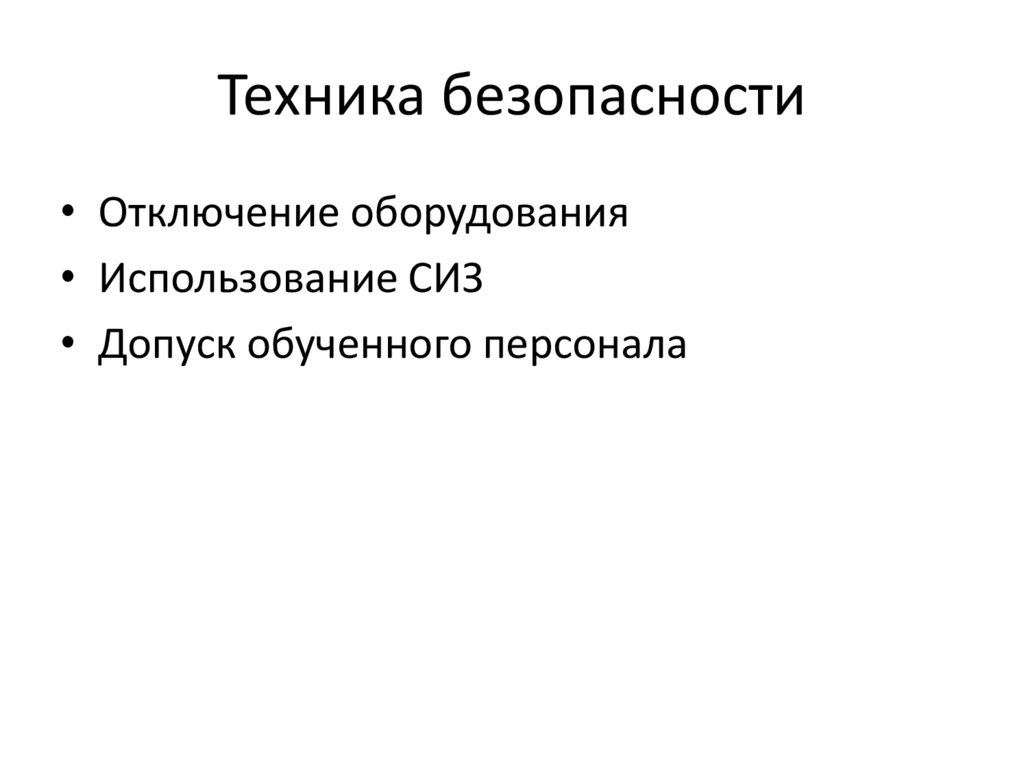 Техника безопасности• Отключение оборудования