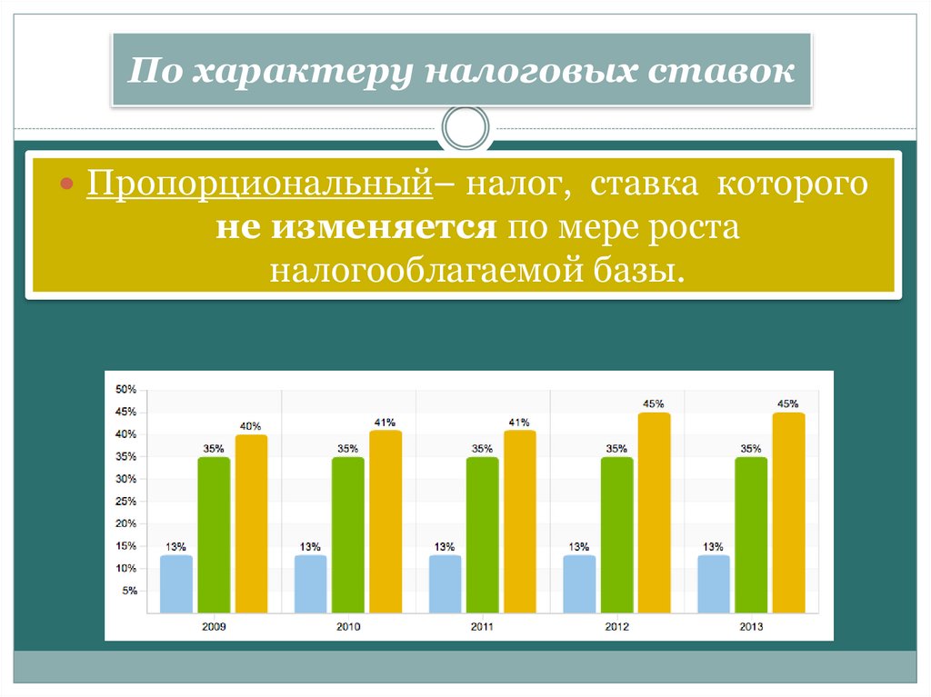 По характеру налоговых ставокПропорциональный– налог, ставка которого