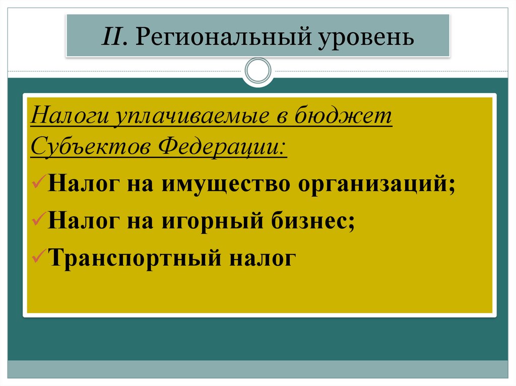 II. Региональный уровеньНалоги уплачиваемые в бюджет