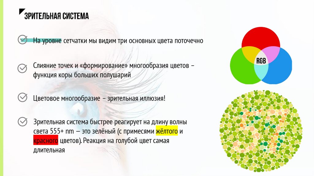 Важно, чтобы цвета, находящиеся рядом на изображении, одновременно не активизировали разные типы рецепторов,