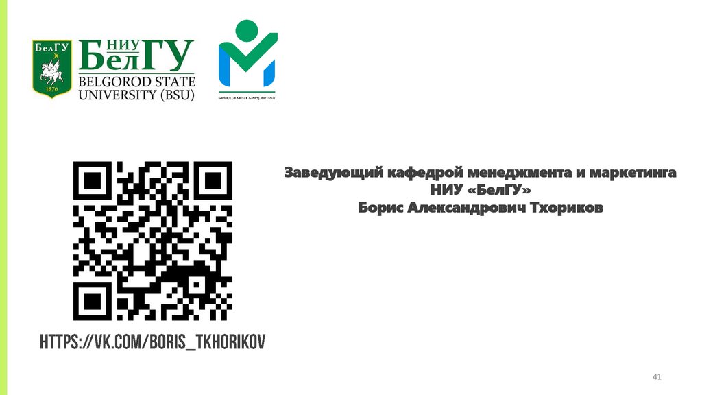 Заведующий кафедрой менеджмента и маркетингаНИУ «БелГУ»