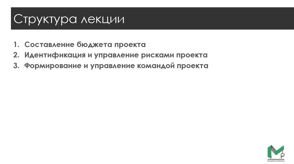 Структура лекции1. Составление бюджета проекта