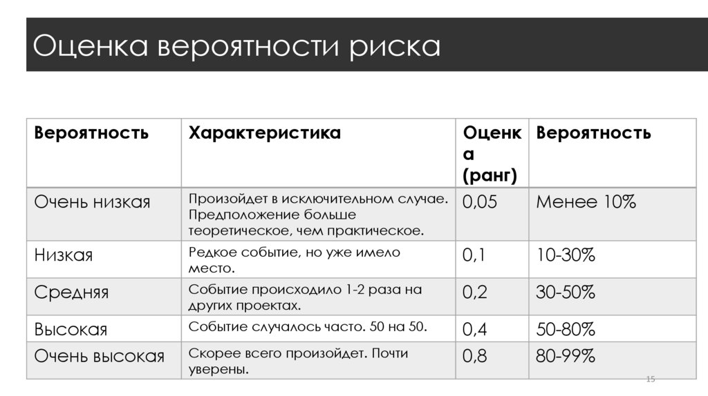 Снижение риска – снижение вероятности наступления