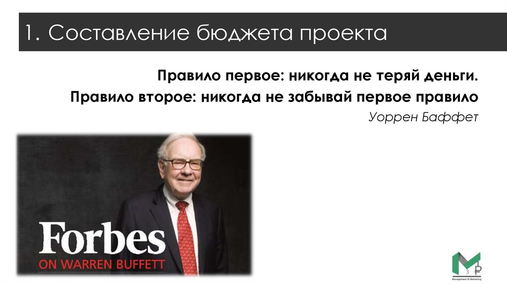 1. Составление бюджета проектаПравило первое: никогда не теряй деньги.