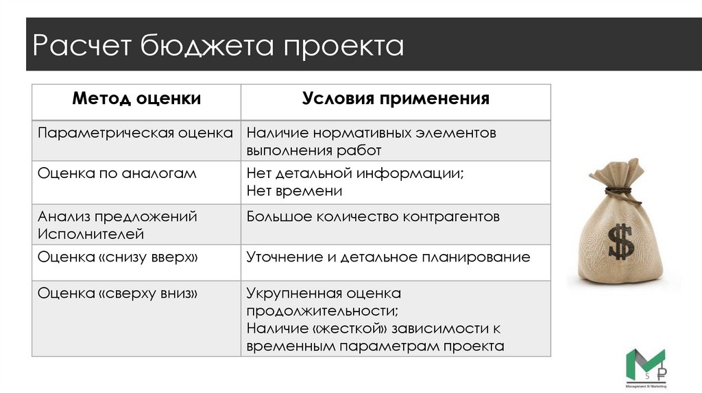 Расчет бюджета проектаМетод оценки