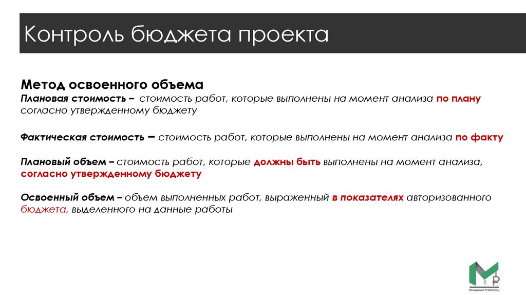 Контроль бюджета проектаМетод освоенного объема