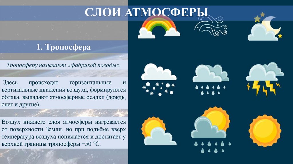 СЛОИ АТМОСФЕРЫ1. Тропосфера