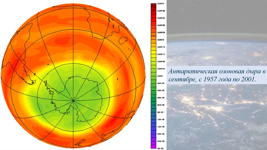 озоновые дыры (например, над Антарктидой).