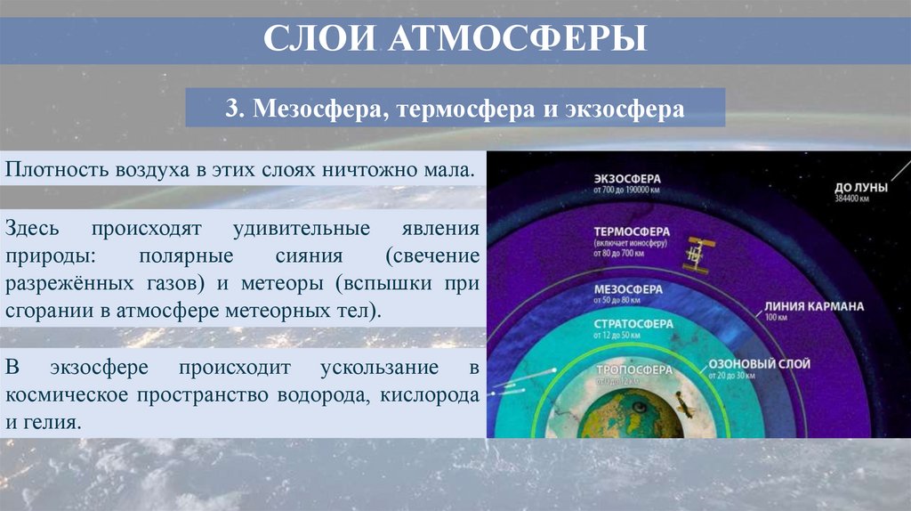 СЛОИ АТМОСФЕРЫ3. Мезосфера, термосфера и экзосфера