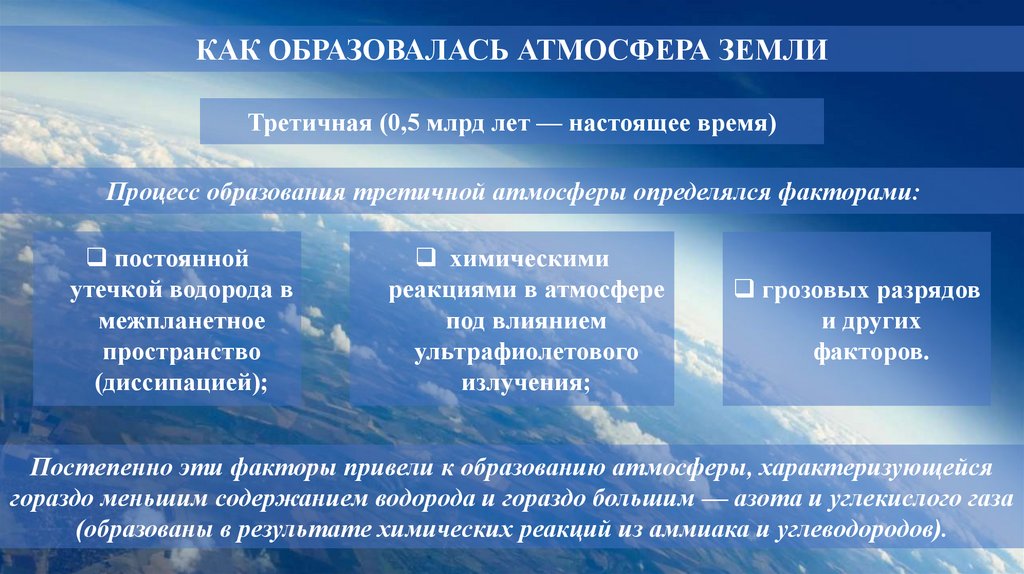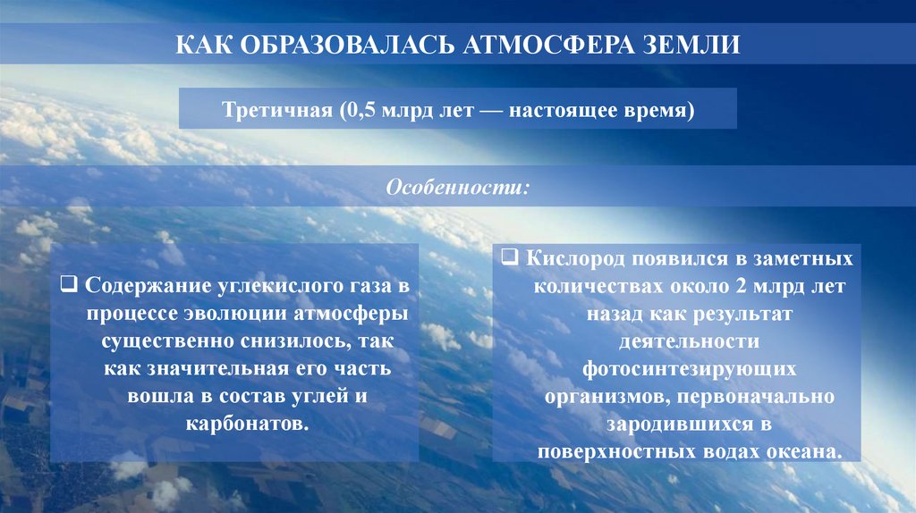 КАК ОБРАЗОВАЛАСЬ АТМОСФЕРА ЗЕМЛИТретичная (0,5 млрд лет — настоящее время)