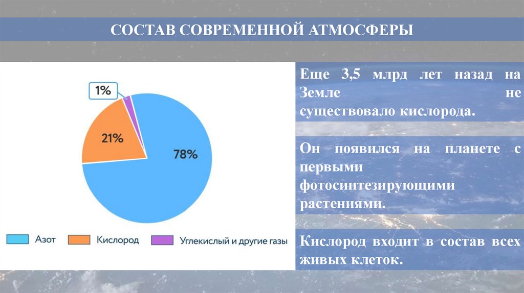 СОСТАВ СОВРЕМЕННОЙ АТМОСФЕРЫЕще 3,5 млрд лет назад на