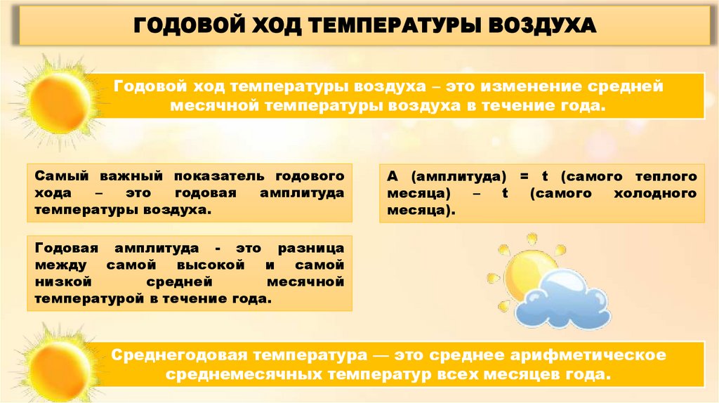 ГОДОВОЙ ХОД ТЕМПЕРАТУРЫ ВОЗДУХАГодовой ход температуры воздуха – это изменение средней