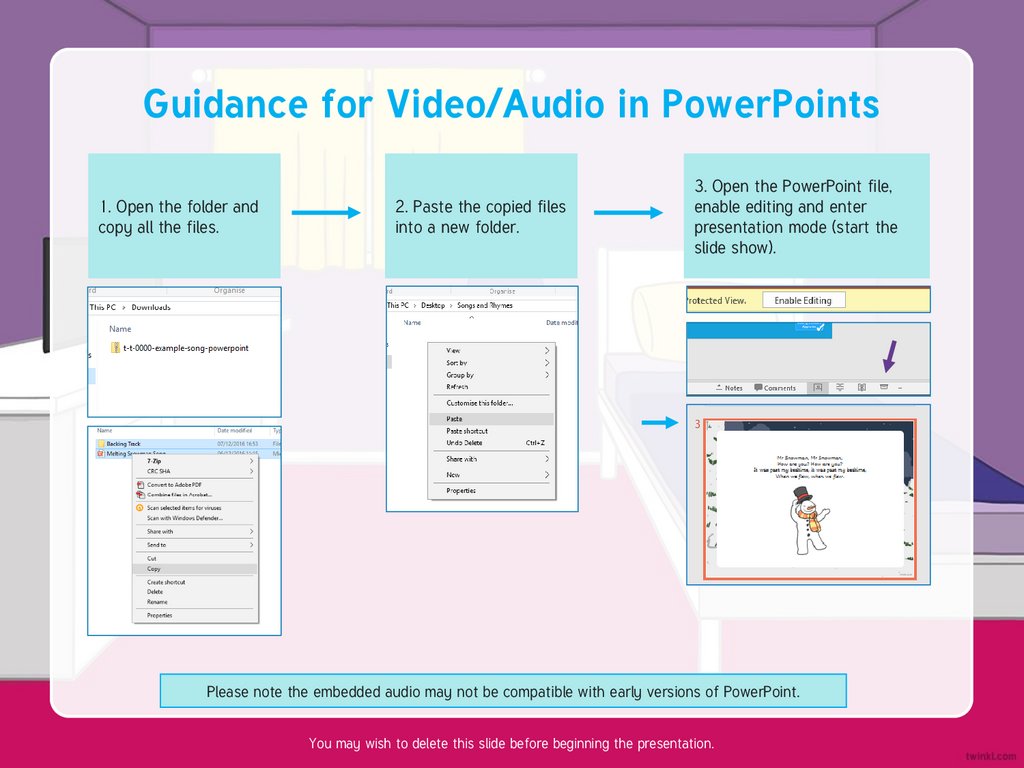 Please note the embedded audio may not be compatible with early versions of PowerPoint.