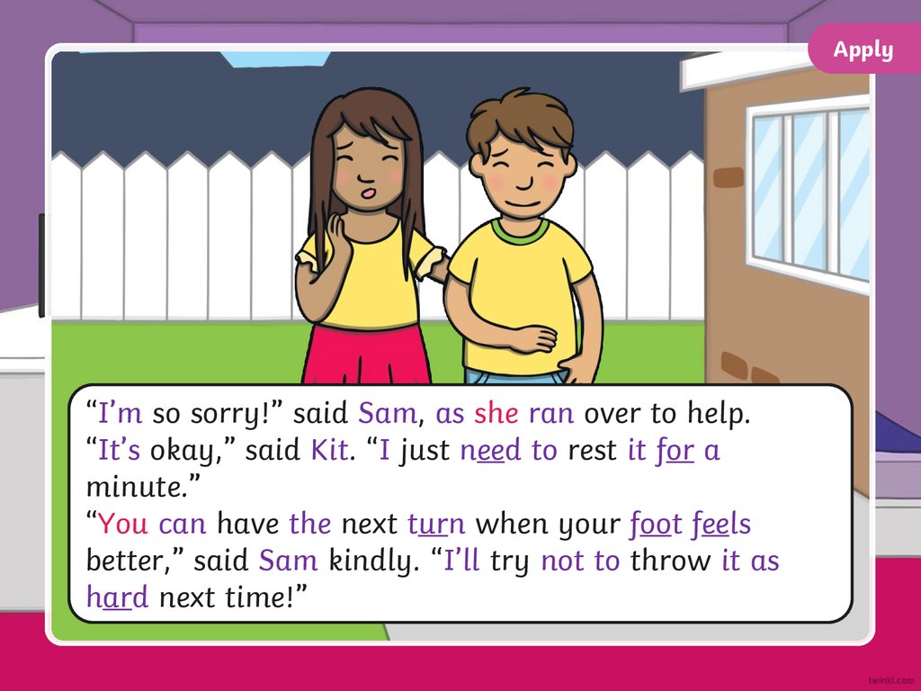 Apply“I’m so sorry!” said Sam, as she ran over to help.