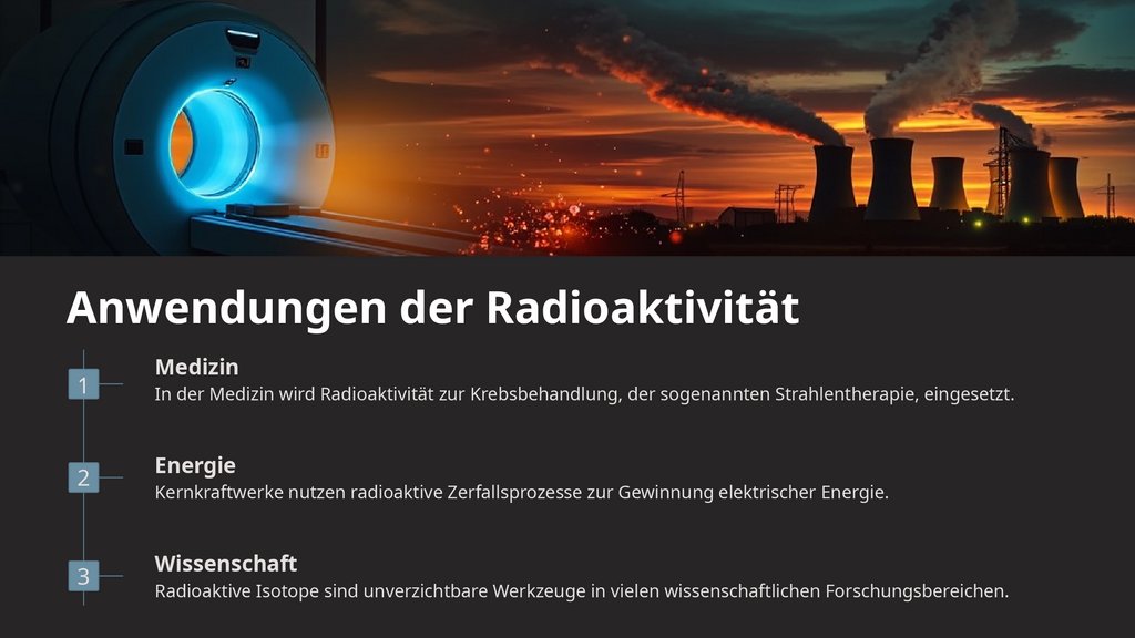 In der Medizin wird Radioaktivität zur Krebsbehandlung, der sogenannten Strahlentherapie, eingesetzt.