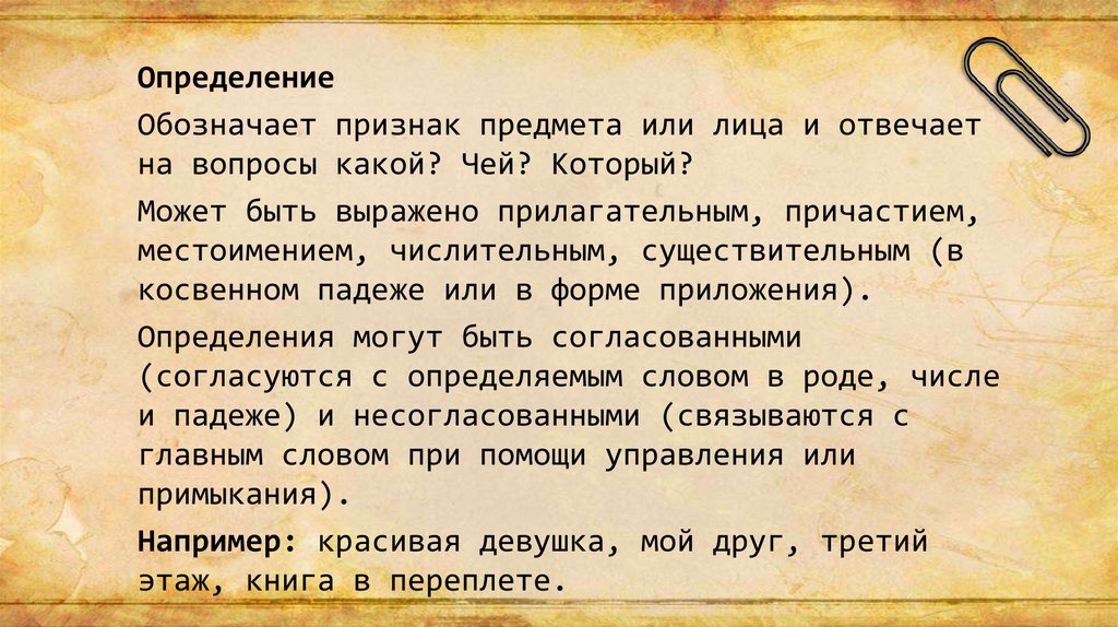 ОпределениеОбозначает признак предмета или лица и отвечает