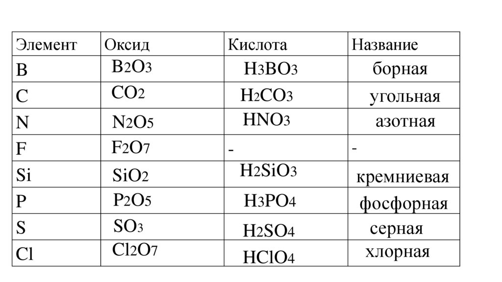 образованных элементами-неметаллами 2го и 3-го периодов, и формулы