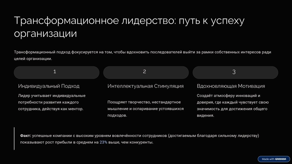 Факт: успешные компании с высоким уровнем вовлечённости сотрудников (достигаемым благодаря сильному лидерству)