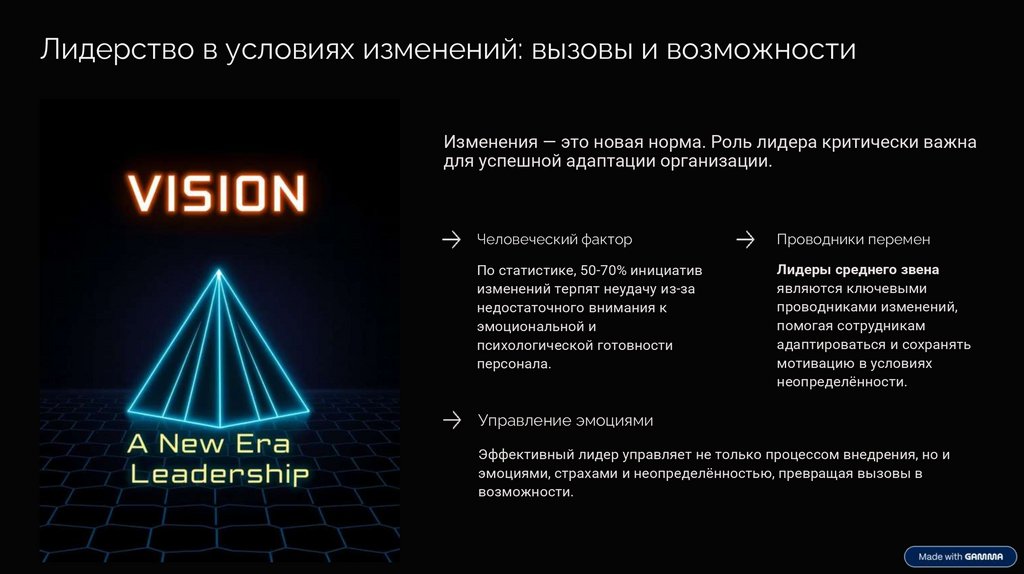 Лидерство в условиях изменений: вызовы и возможностиИзменения — это новая норма. Роль лидера критически важна
