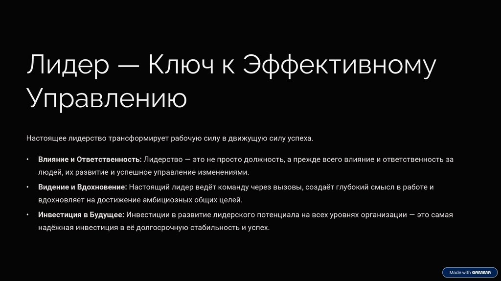 Влияние и Ответственность: Лидерство — это не просто должность, а прежде всего влияние и ответственность за