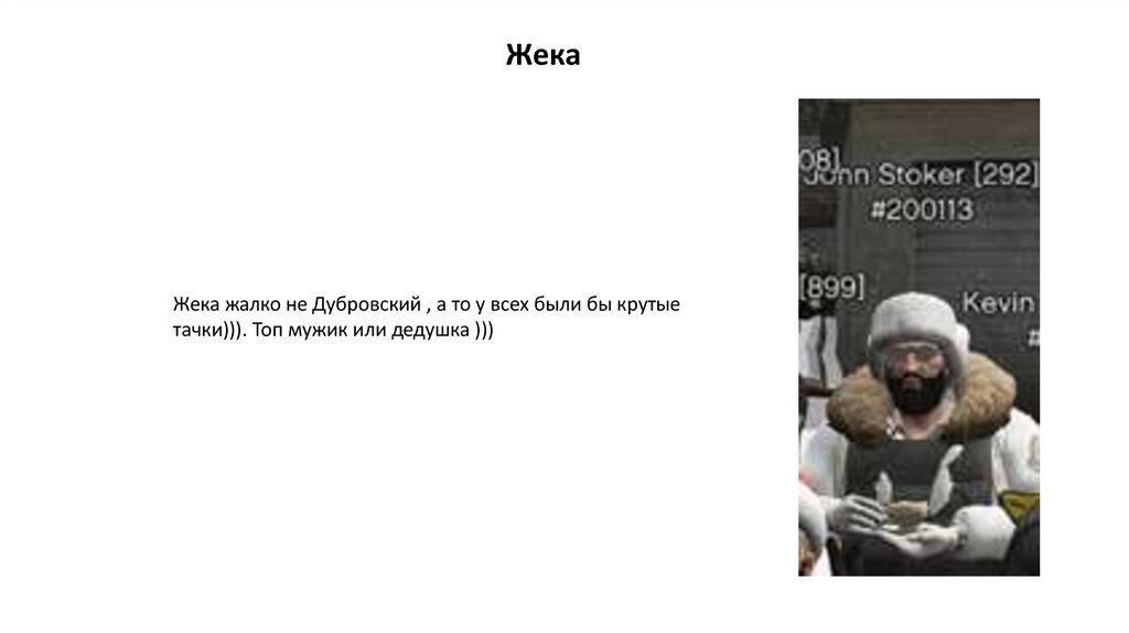 ЖекаЖека жалко не Дубровский , а то у всех были бы крутые