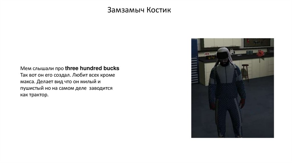 МоджикМоджик иногда душнит и любит подушить Саню или макса,